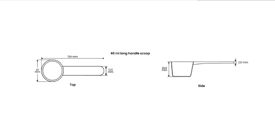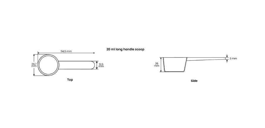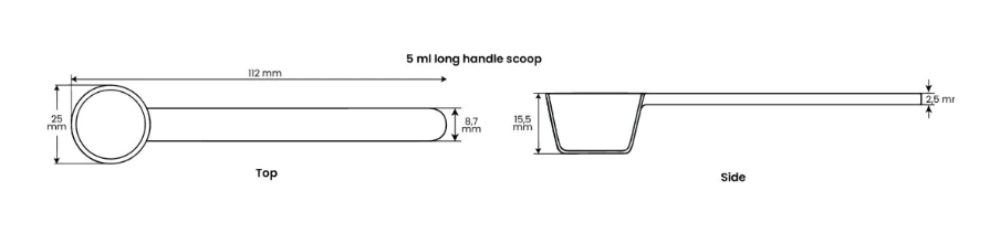 Discover these measuring scoops with long handle! Available in sizes from 1 to 40 ml, so you can dose accurately. They are made of sturdy and 100% recyclable PP material (recycle code 5).
